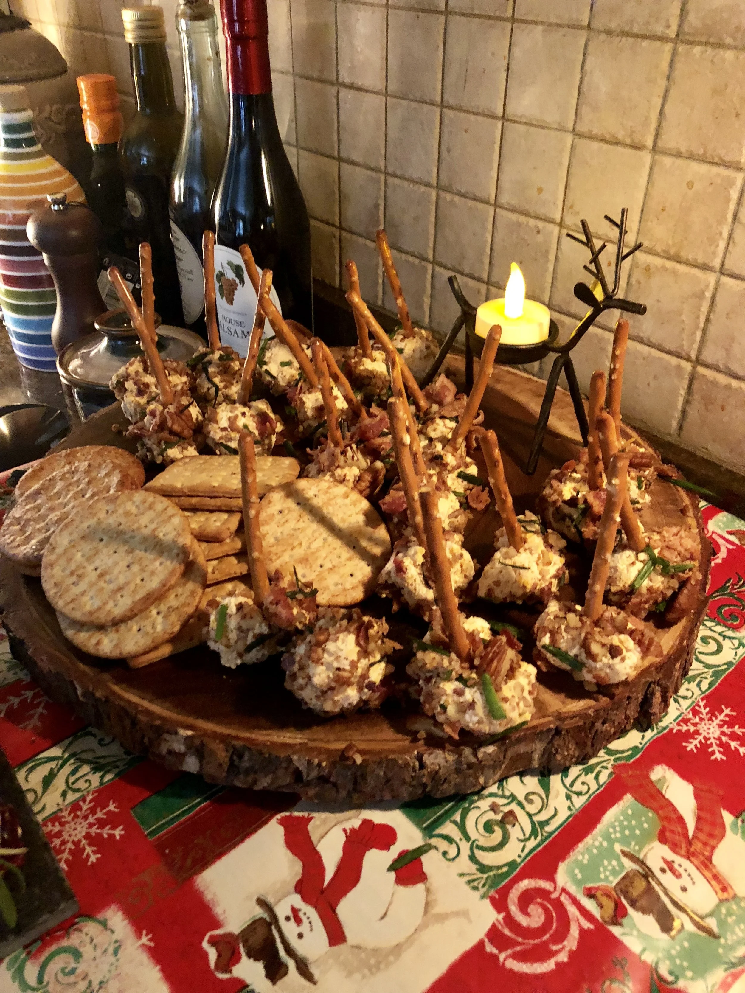 For Christmas Day, we decided to do an appetizer hour, where everyone brought an appetizer. Instead of starting in on a full dinner right away, we were able to graze with some drinks and socializing. I loved this idea! I made two cheeseball bites (totally came from Pinterest and not my idea—I’ll be linking up the exact recipes here), which where a White Cheddar Parmesan Cheeseball bite topped with cranberries (above) and Cheddar Cheeseballs with fresh bacon and chives (below). You can find the White Cheddar Parmesan Cheeseball bite here, and the Cheddar Bacon Chive Cheeseball Bite here.