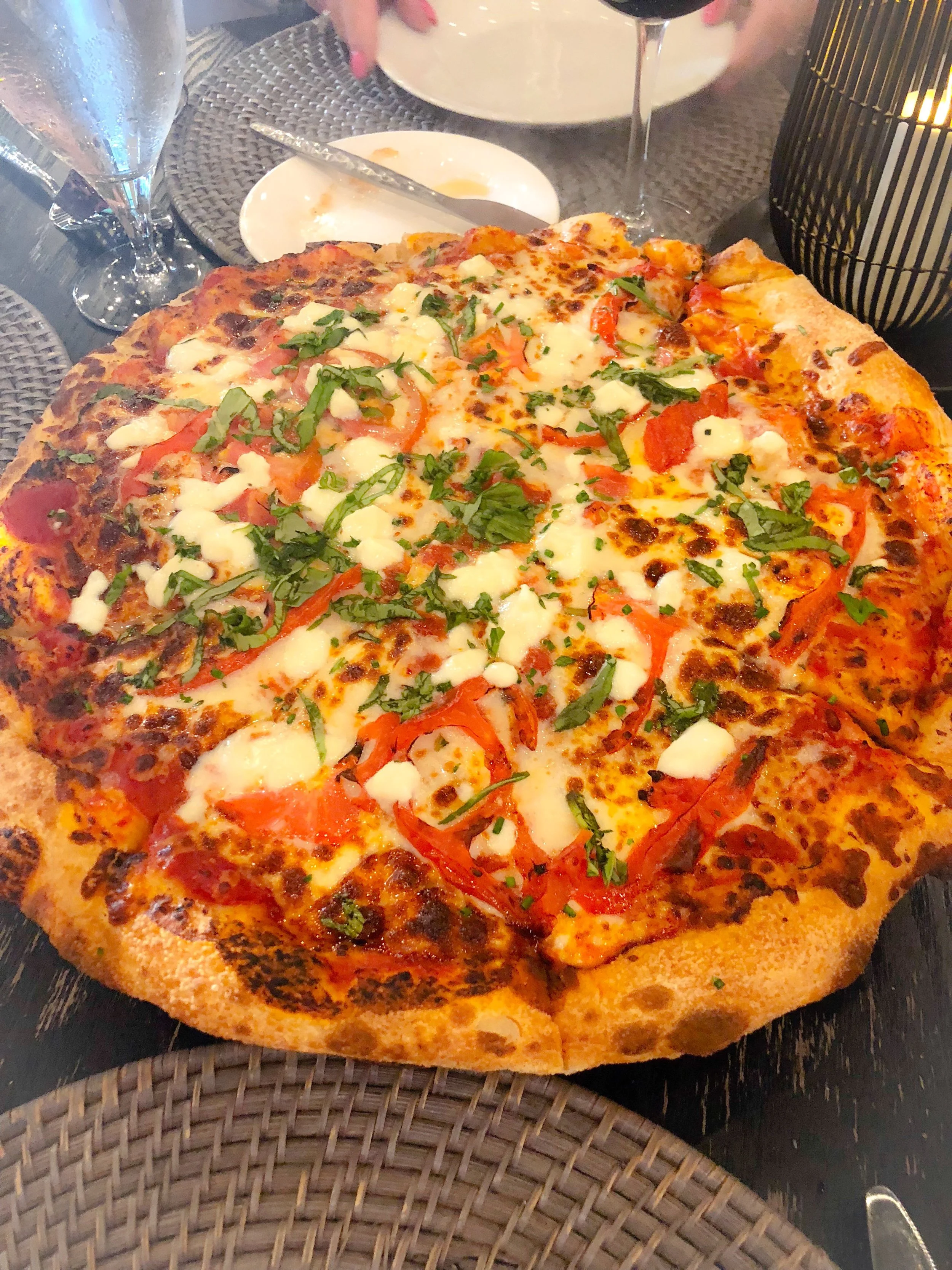 Sapphire Creek Winery offers a variety of appetizers, small plates, and entrees that pair perfectly with wine! We ordered their cheese plate to start and ended up splitting several appetizers, including the Margherita Pizza (pictured), shrimp (pictured), as well as chicken meatballs (not pictured). Everything was delicious and paired perfectly with the wines.