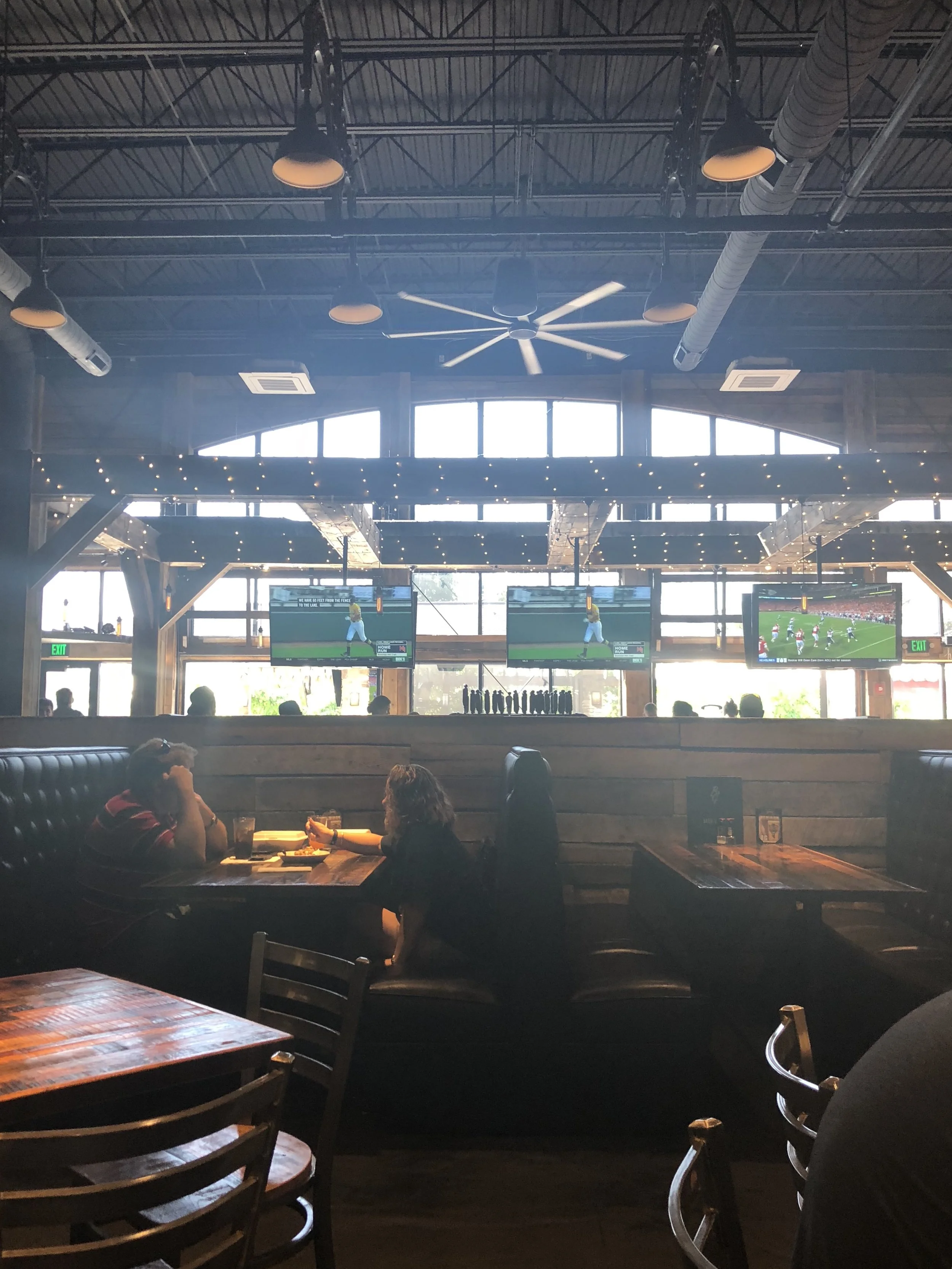 This is a great place to go if you love beer, bar food, and sports! The restaurant has huge TVs and a great selection of food--there is a dish for everyone! Both locations have a huge outdoor patio and a great ambience. There is a nice party room, and the inside has up to date, cozy decor.