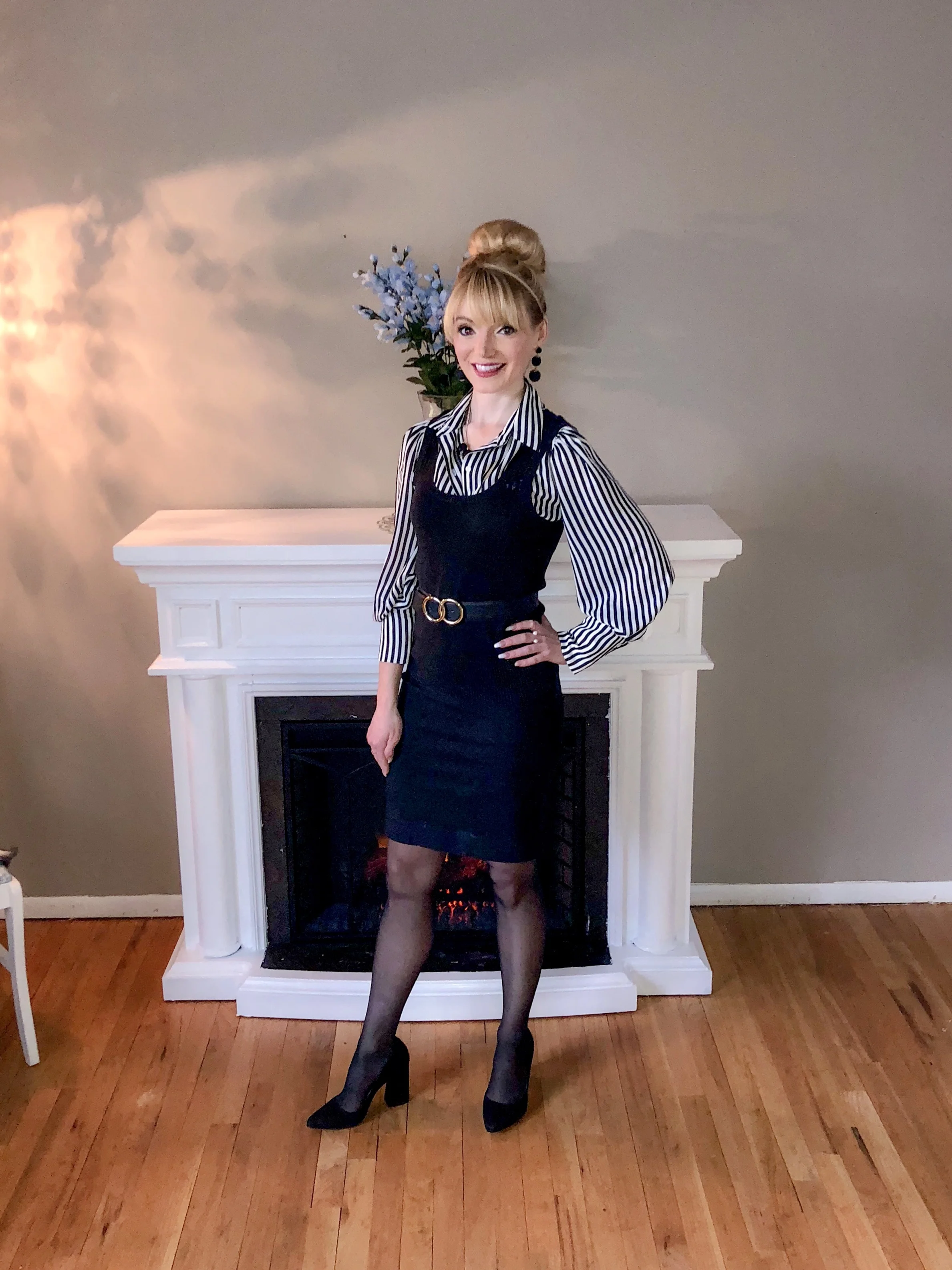 Wearing a classic striped blouse! Hitting a bunch of style tips including classic silhouettes and layering!
