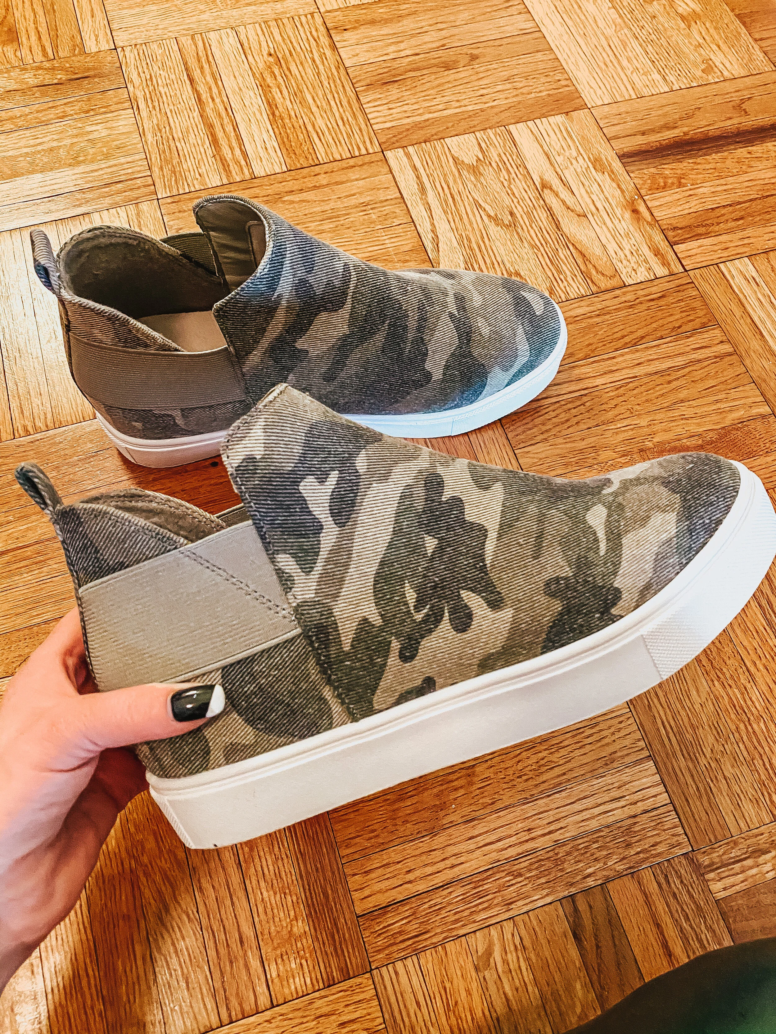 Last but not least, I have been wanting a pair of fun, high top sneakers, and when I saw these camo sneakers, I knew I had to have them. They are perfect with either leggings or jeans and are so on trend with the high-top style. I know I will be wearing these all season long. I ordered my usual size 7.5, and they fit perfectly!