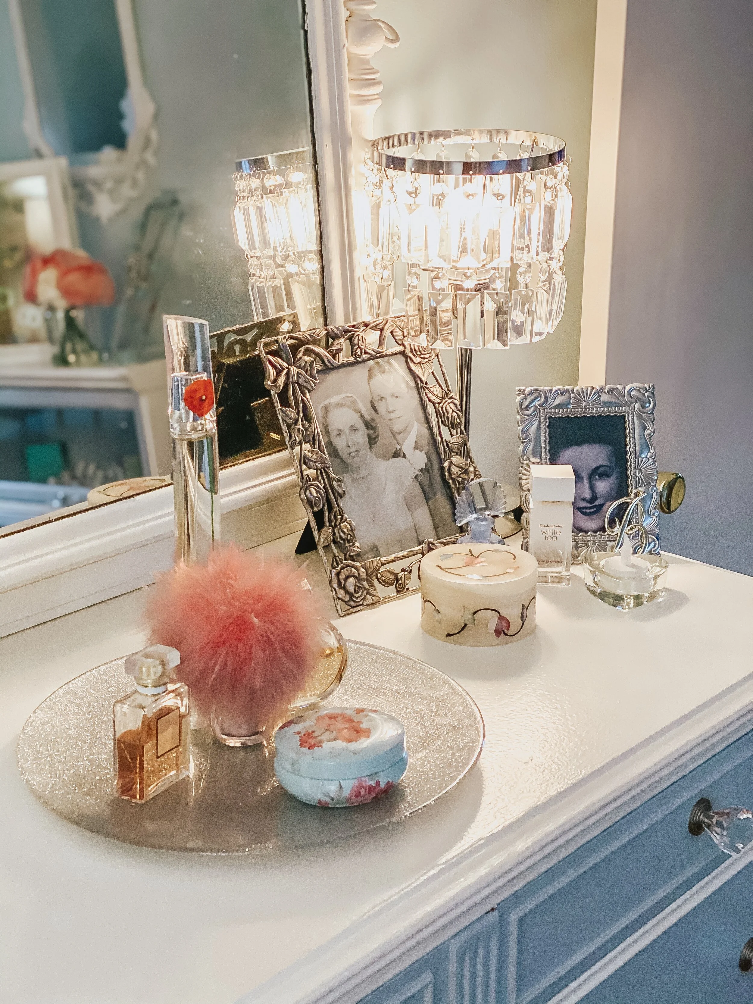 When I was really re-doing my guest bedroom, one of the main items I wanted was a vintage dresser to upcycle with painting and some of my personal touch. I initially was looking at a vintage Art Deco dresser, but all the ones I found were too beautiful for what I wanted to do OR way too expensive. After much searching at estate sales and online auctions, I ended up settling for this vintage vanity I found at an online auction. It’s been over 3 years since I purchased it, so I don’t even remember how much it was! I’m thinking it was probably around $85.