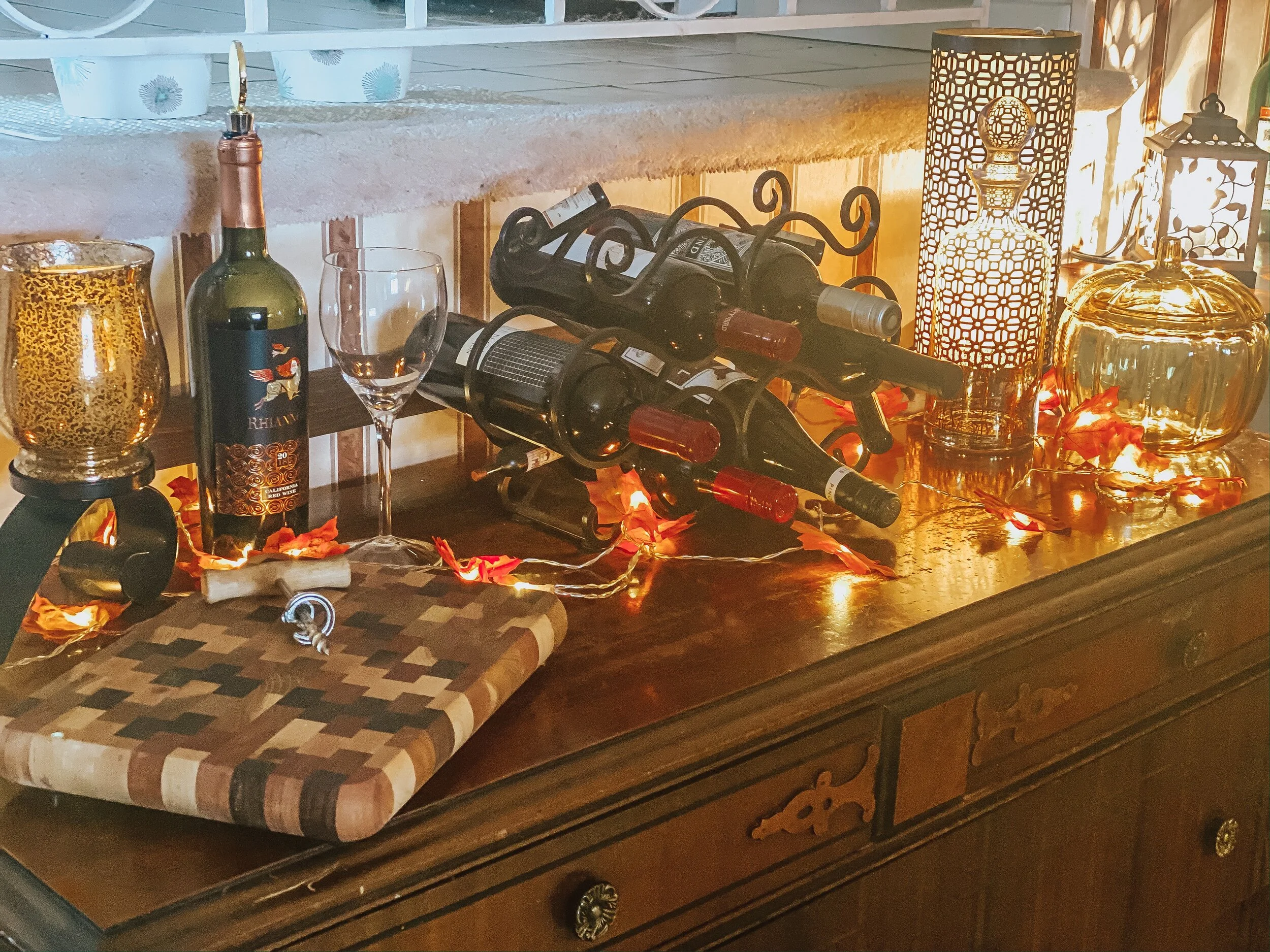 One of the last areas I added some updated fall decor to was my wine bar! All I did was use my other string of LED fall leaf lights to create some ambience with a vintage gold pumpkin candy dish! My other Lakota Lane piece, this gorgeous cutting board, is used as a display piece for now and is easily accessible for serving cheese (here is my original post on the cutting board). Again, don’t forget to use my code Kristen10 to save 10% at Lakota Lane.