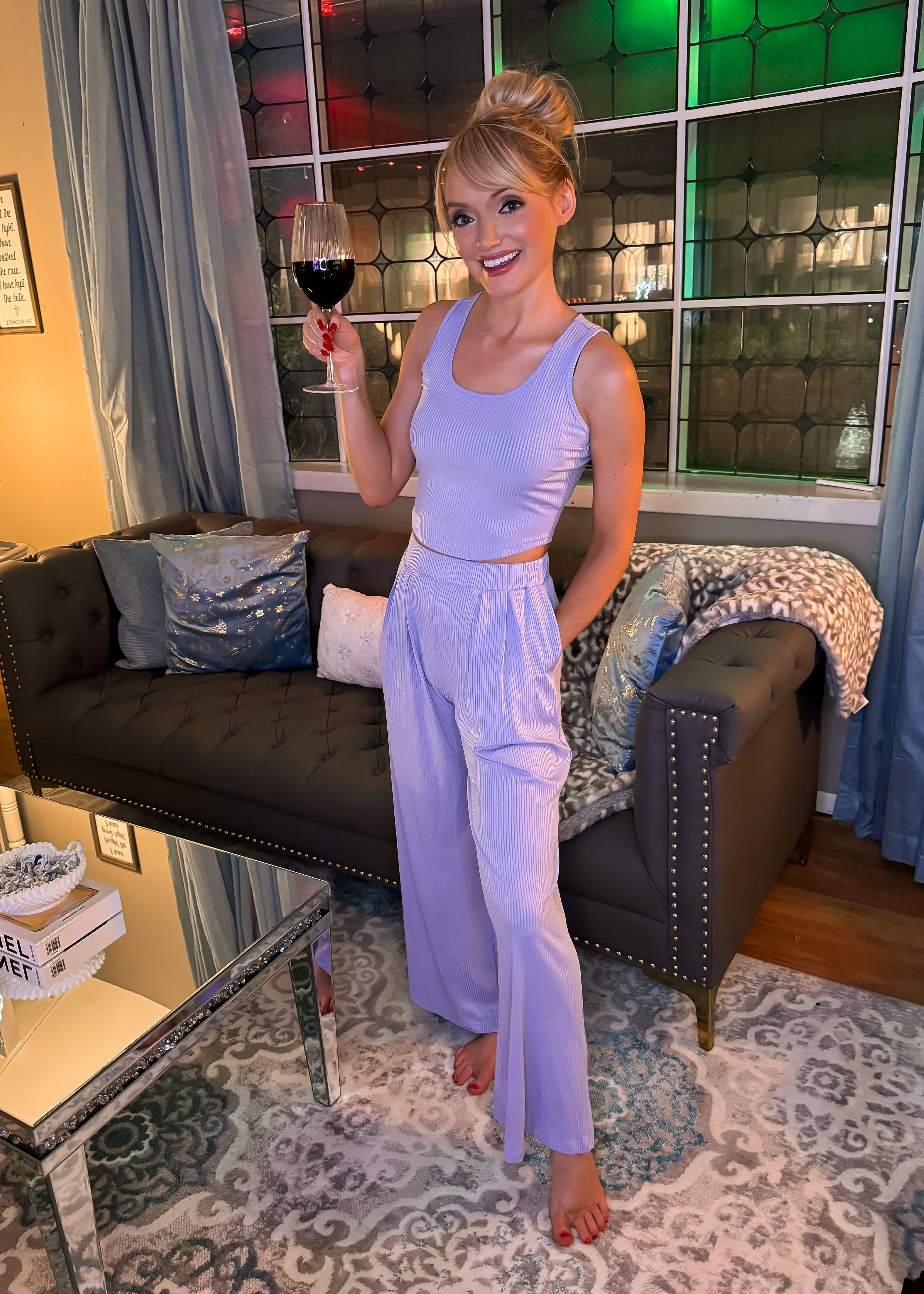 I love that this is a three piece loungewear set that is so versatile and can be mixed and matched with other products! The tank has side ruching, and it is also has a luxurious modal type material.